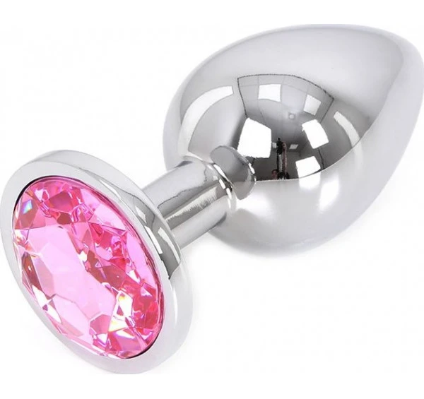 Plug anal ou vaginal avec strass rose, fabriqué en aluminium.